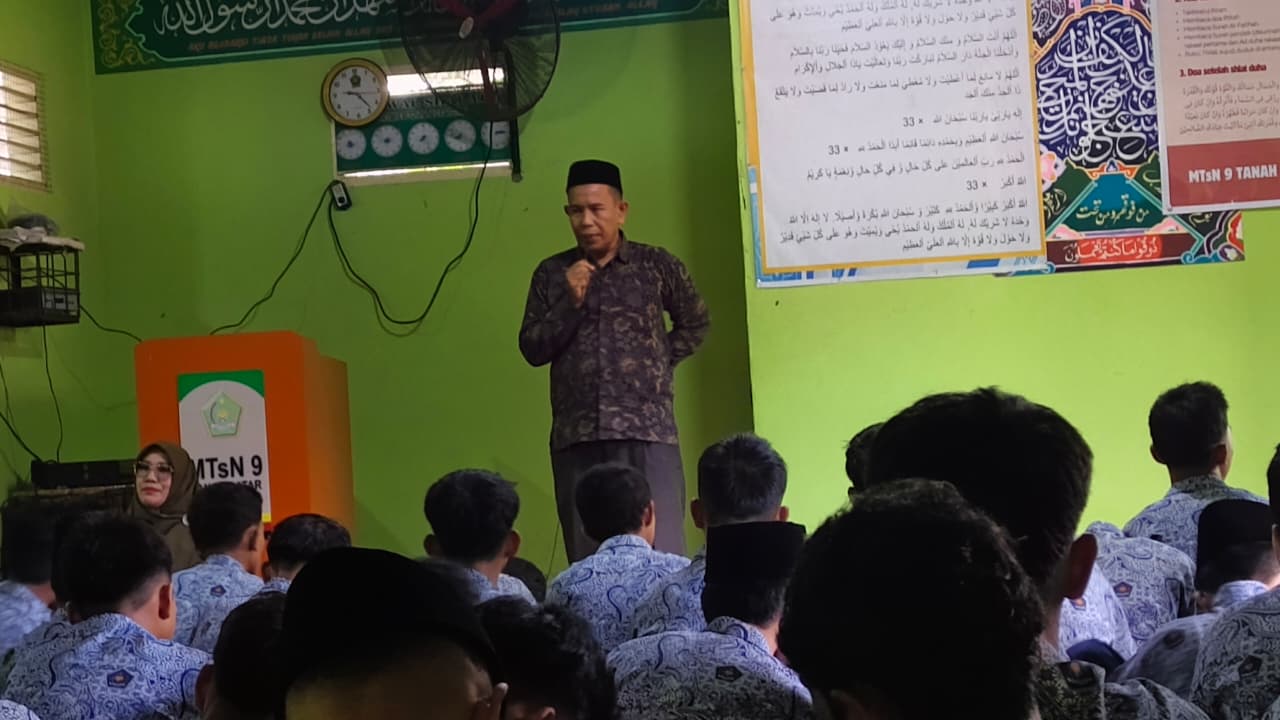 Tanah Datar —Sabtu,28 Februari 2026.Menjelang masuk waktu Sholat Dzuhur, Kepala MTsN 9 Tanah Datar, Bapak Mulyandri, S.Pd, memberikan kultum (kuliah tujuh menit) kepada seluruh si